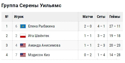 Ертең қазақстандық чемпион топтық кезеңдегі соңғы кездесуін өткізеді, қарсыласы - америкалық Мэдисон Киз. Нәтижеге қарамастан, Елена Рыбакина жартылай финалға жолдама алды.