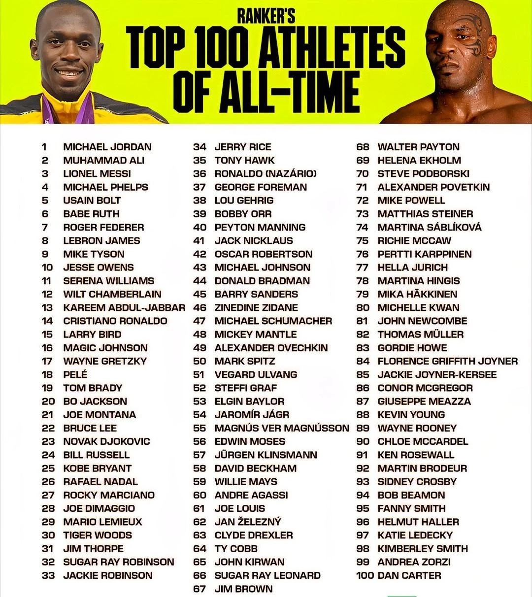 Global Statistics тарихтағы үздік 100 спортшыны анықтады