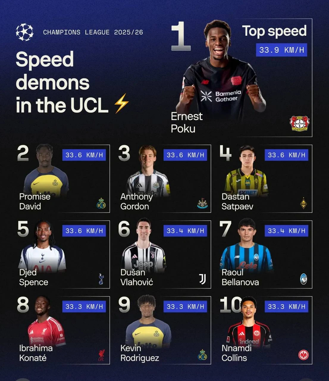 - Эрнес Поку (Байер) – 33,9 км/сағ