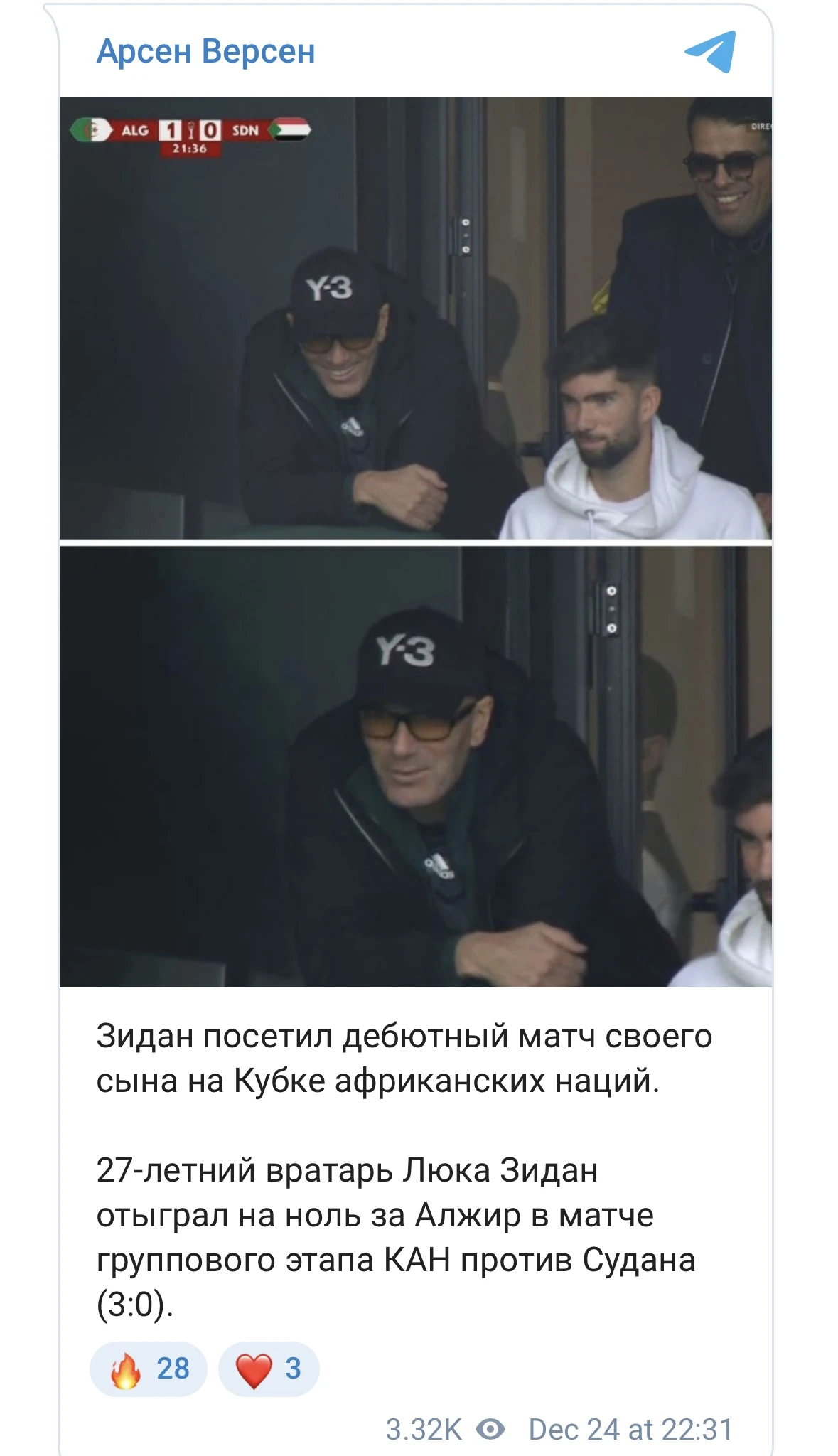 Франция құрамасының құрамында әлем және Еуропа чемпионы Зинедин Зидан ұлының Африка Ұлттар Кубогындағы дебюттік матчын тамашалады, деп хабарлайды Prosports.kz.