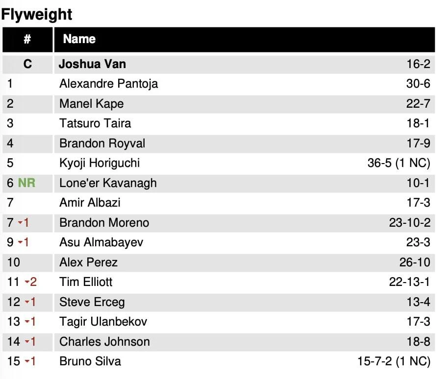 Мексиканың Мехико қаласында өткен UFC Fight Night 269 турнирінен кейін UFC-дің жеңіл салмақтағы жаңартылған рейтингі жарияланды, деп хабарлайды Prosports.kz.