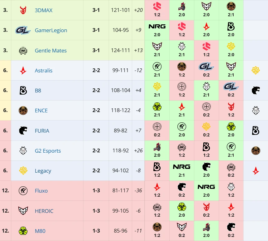 Gentle Mates оформили уверенную победу над Legacy – 2:0 (Ancient 13:11, Mirage 13:4). Испанская команда, получившая приглашение в последний момент, сумела выйти во второй этап. Legacy, как и B8 с ENCE, продолжат борьбу в группе 2-2.