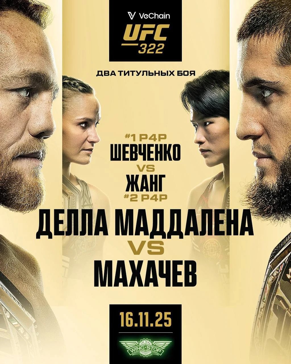 Это соглавный поединок между Валентиной Шевченко и Чжан Вэйли, а также центральный бой вечера - Ислам Махачев - Джек Делла Маддалена.