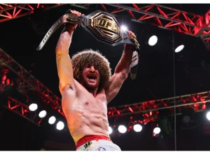 Мерабу Двалишвили 34 года. Грузинский боец дебютировал в UFC в 2017 году. В сентябре 2024 года стал чемпионом в легчайшем весе (до 61 кг), после чего провел три успешных защиты.
