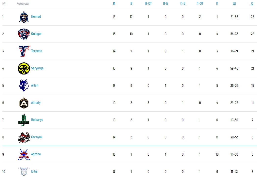 Арлан – Актобе, Кулагер - Сарыарка. Прямая трансляция матчей чемпионата Казахстана по хоккею. Турнирная таблица