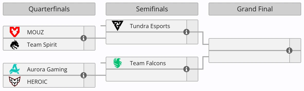 Плей-офф BLAST Slam 4 пройдет в Сингапуре с 7 по 9 ноября. Победители матчей Spirit — MOUZ и Aurora — Heroic встретятся в полуфиналах против Tundra и Falcons соответственно.