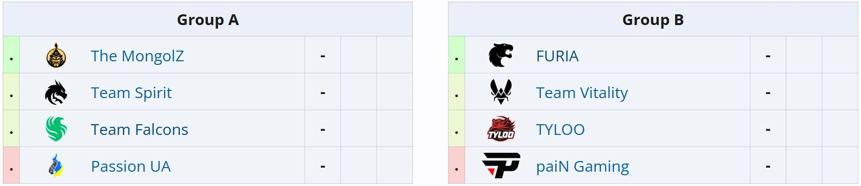 Главным событием первого дня станет встреча Spirit и Falcons — двух из сильнейших команд мира. Также в день открытия состоится бразильское дерби между paiN и FURIA, а завершится первый раунд матчами The MongolZ против Passion UA и Vitality против TYLOO.