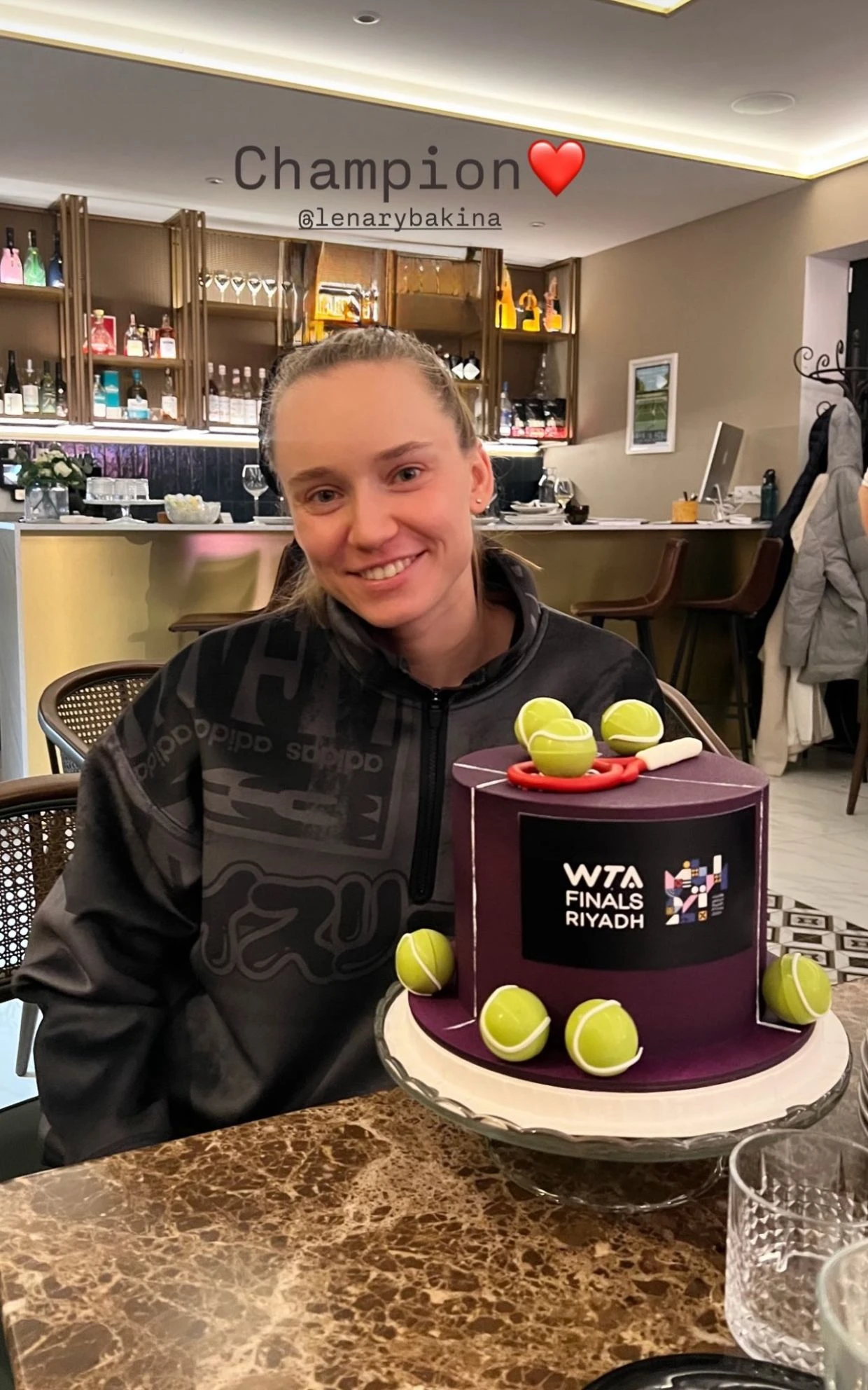 Фото: Рыбакина получила торт в честь триумфа на Итоговом чемпионате WTA
