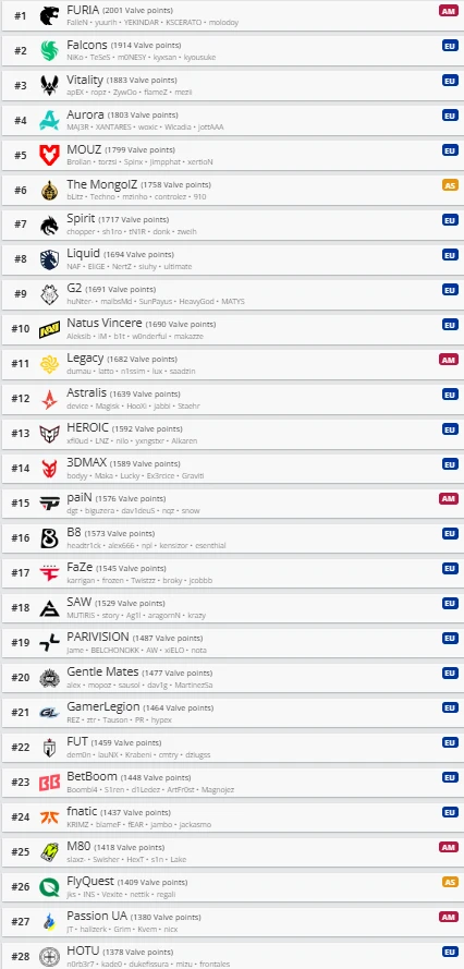 Virtus.pro оказалась лишь на 41-й позиции рейтинга и не проходит под критерии выдачи приглашений. Кроме того, состав Ильи Perfecto Залуцкого не подходит под условия Wildcard, что еще больше снижает шансы команды попасть на квалификации.