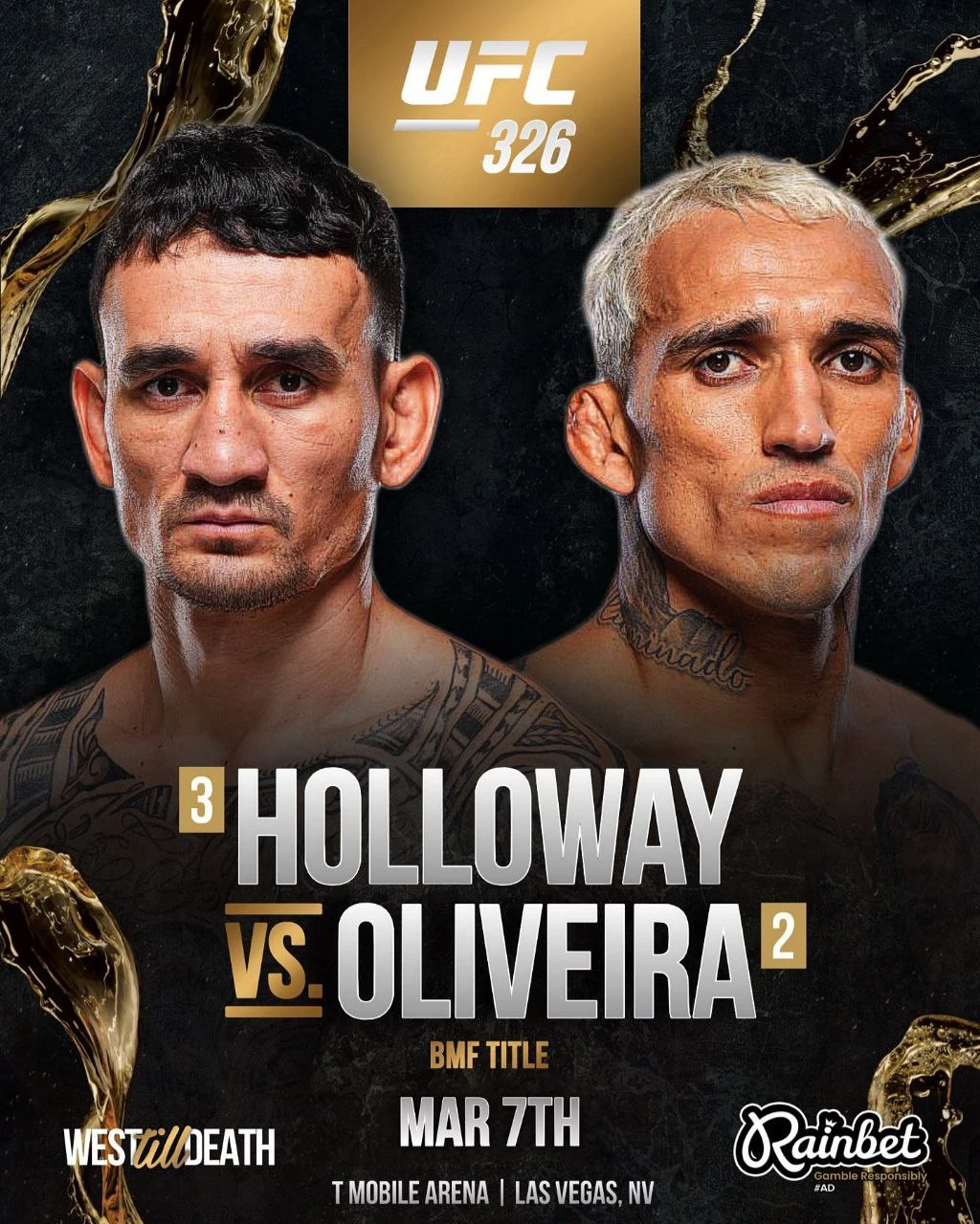 На номерном турнире UFC 326, который состоится в ночь на 8 марта в Лас-Вегасе, в «клетку» выйдут действующий обладатель пояса BMF Макс Холлоуэй бразильский файтер Чарльз Оливейра.