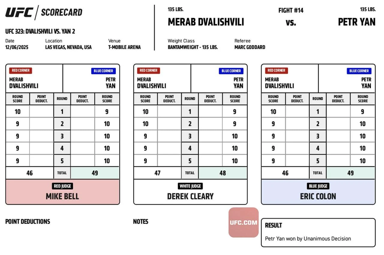 Поединок длился все пять раундов и завершился победой Яна. Судьи вынесли единогласный вердикт в его пользу (49-46, 49-46, 48-47).