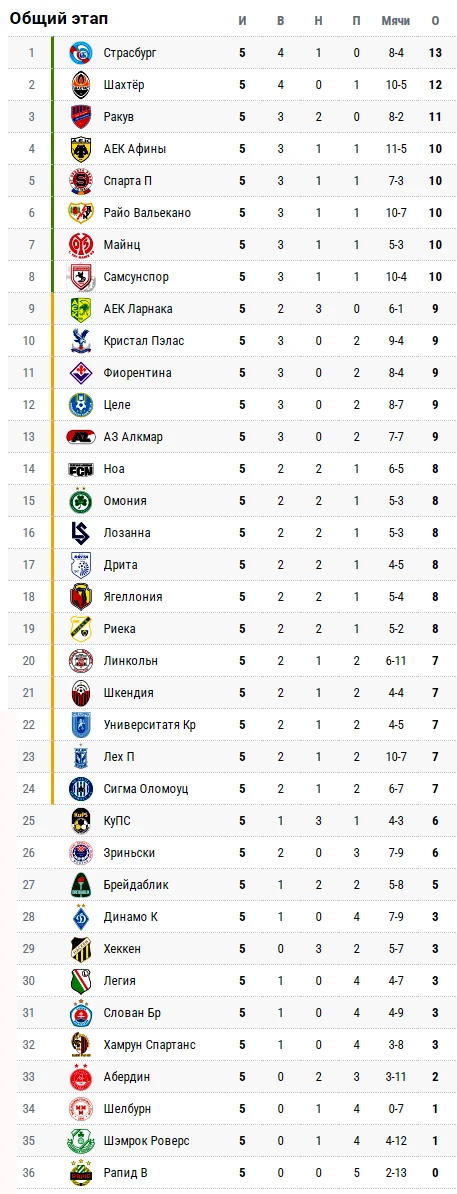 В Лиге конференций завершился пятый тур общего этапа, передает Prosports.kz.