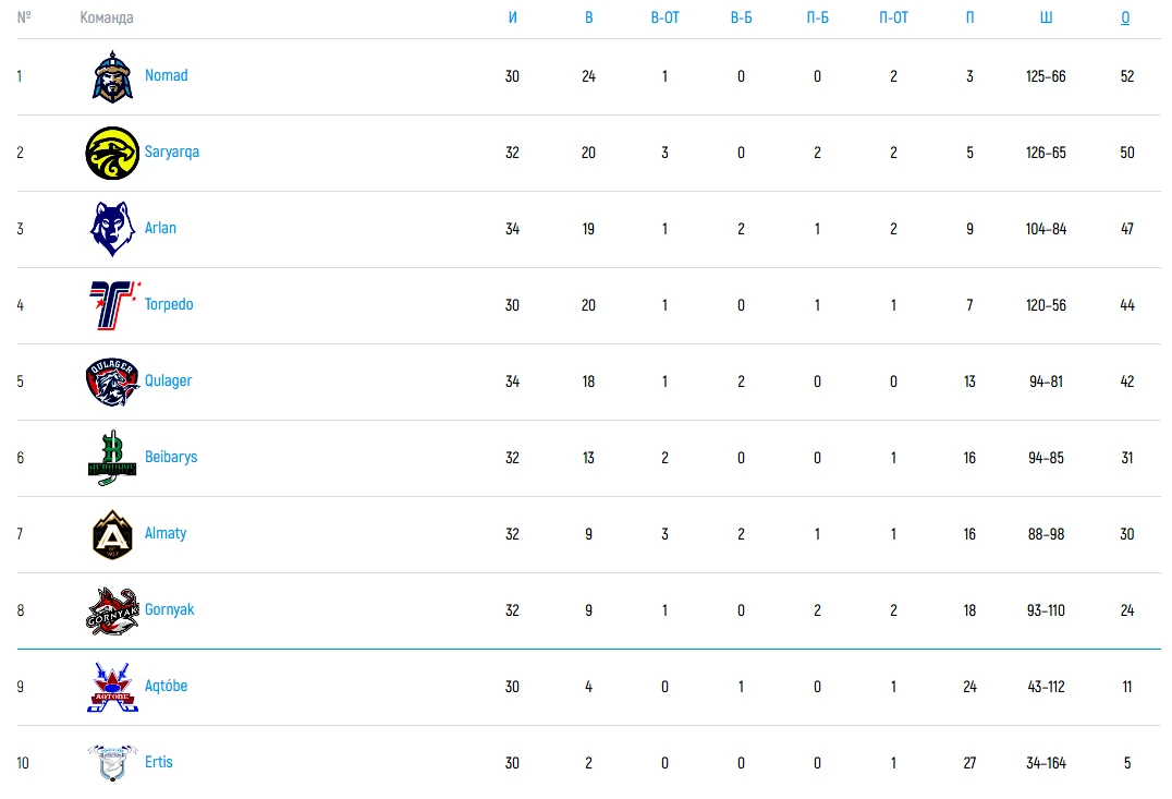 Pro Hokei Ligasy. Положение команда на 12 декабря