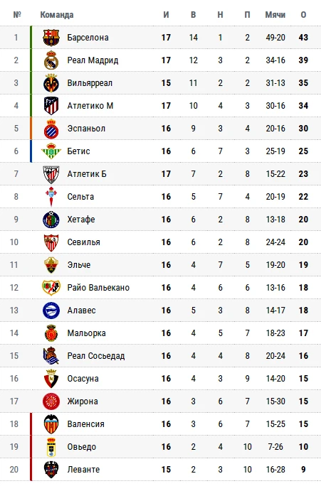 В испанской Примере начался 17 тур, передает Prosports.kz.