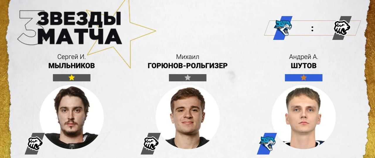 Вратарь астанчан Андрей Шутов отразил 20 бросков в створ и стал третьей звездой встречи. Также лучшими были признаны голкипер соперника Сергей Мыльников ("сухарь" за вечер) и нападающий челябинцев Михаил Горюнов-Рользигер (автор первой шайбы в игре).