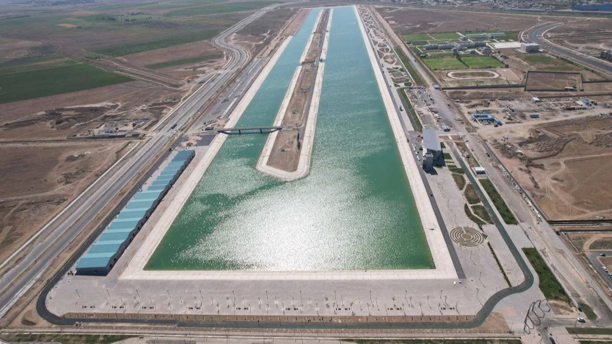 Гребной канал начали строить в 2020 году, он расположен в административно-деловом центре Туркестана. Общая площадь составляет около 100 гектаров. Почти половина этой территории – вода: зеркало канала составляет 48 гектаров. Его длина – 2 222 метра, глубина – до 4 метров. Стоимость проекта оценили в 15 млн евро или 8 млрд тенге( по курсу того времени).