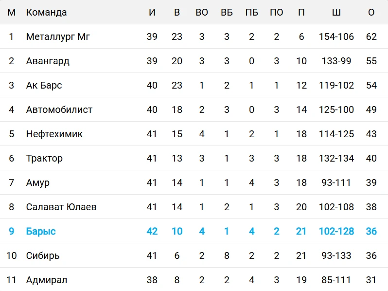 Астанинский «Барыс» на данный момент имеет 36 очков и занимает девятое место на Востоке. В последнем матче 2025 года подопечные Михаила Кравца обыграли «Авангард» со счетом 4:2.