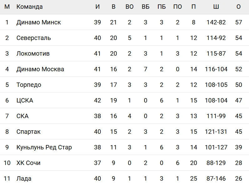 Лидером конференции остается магнитогорский «Металлург», который набрал 62 очка в 39 играх.