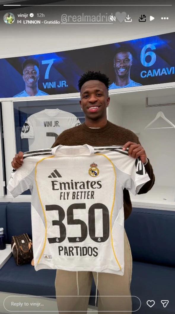 Вскоре после окончания матча Винисиус Жуниор опубликовал в социальных сетях фотографию из раздевалки «Реала», где он демонстрирует футболку, которую получил за 350 игр, сыгранных за мадридскую команду. Поединок против «Леванте» стал 351-м матчем Винисиуса за «Реал».
