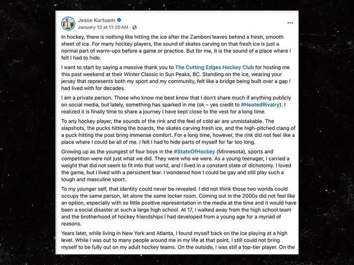 После просмотра популярного сериала о соперниках, ставших любовниками, уроженец Миннесоты Джесси Кортюм в начале этого месяца решил написать свою историю каминг-аута, и это превращается в миссию, выходящую за рамки спорта.