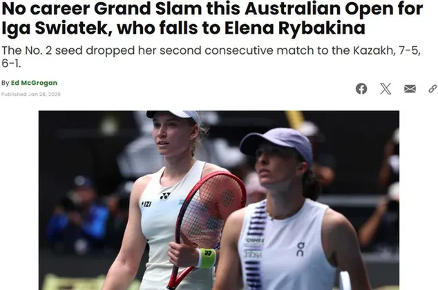 «В карьере Швентек не будет Большого шлема этого Australian Open», констатирует tennis.com. «Вторая сеяная проиграла Рыбакине второй матч подряд. Казахстанская теннисистка только что вышла в свой четвертый полуфинал Большого шлема (первый после Уимблдона в 2024 году). Она подошла к этому матчу в победной серии: выиграла 18 из последних 19 матчей, и последние 8 из них были против теннисисток, входящих в десятку лучших в рейтинге WTA (показатель Швентек в последних восьми матчах — 2-6). Значительную роль в исходе матча сыграла подача. Рыбакина выиграла 79% очков на первой подаче и 17 из 30 очков на второй».