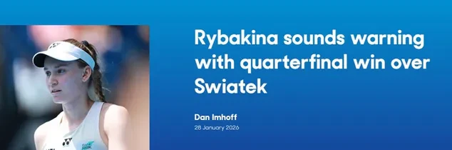 «Казахстанка воспользовалась решающим моментом в первом сете, чтобы перехватить инициативу и выйти в полуфинал в Мельбурне, где встретится со своей следующей соперницей, Джессикой Пегулой. Рыбакиной удалось преодолеть первоначальные проблемы с подачей и одержать убедительную победу, выиграв восемь из последних девяти геймов. Рыбакина теперь в одном шаге от финала. Казахстанка продолжает демонстрировать безупречную форму, которую она показывает с конца 2025 года, одержав 18 побед в последних 19 матчах, а также девятый раз подряд войдя в десятку лучших. Ледяная королева не оставила Швентек ни единого шанса», резюмирует tennisuptodate.com.