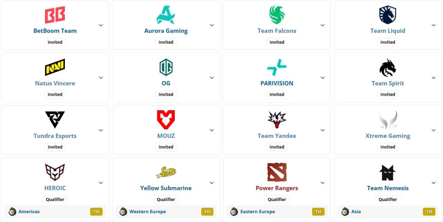 Эти коллективы представляют Америку, Западную и Восточную Европу, а также Азию, и присоединились к 12 командам, получившим прямые приглашения от организаторов.