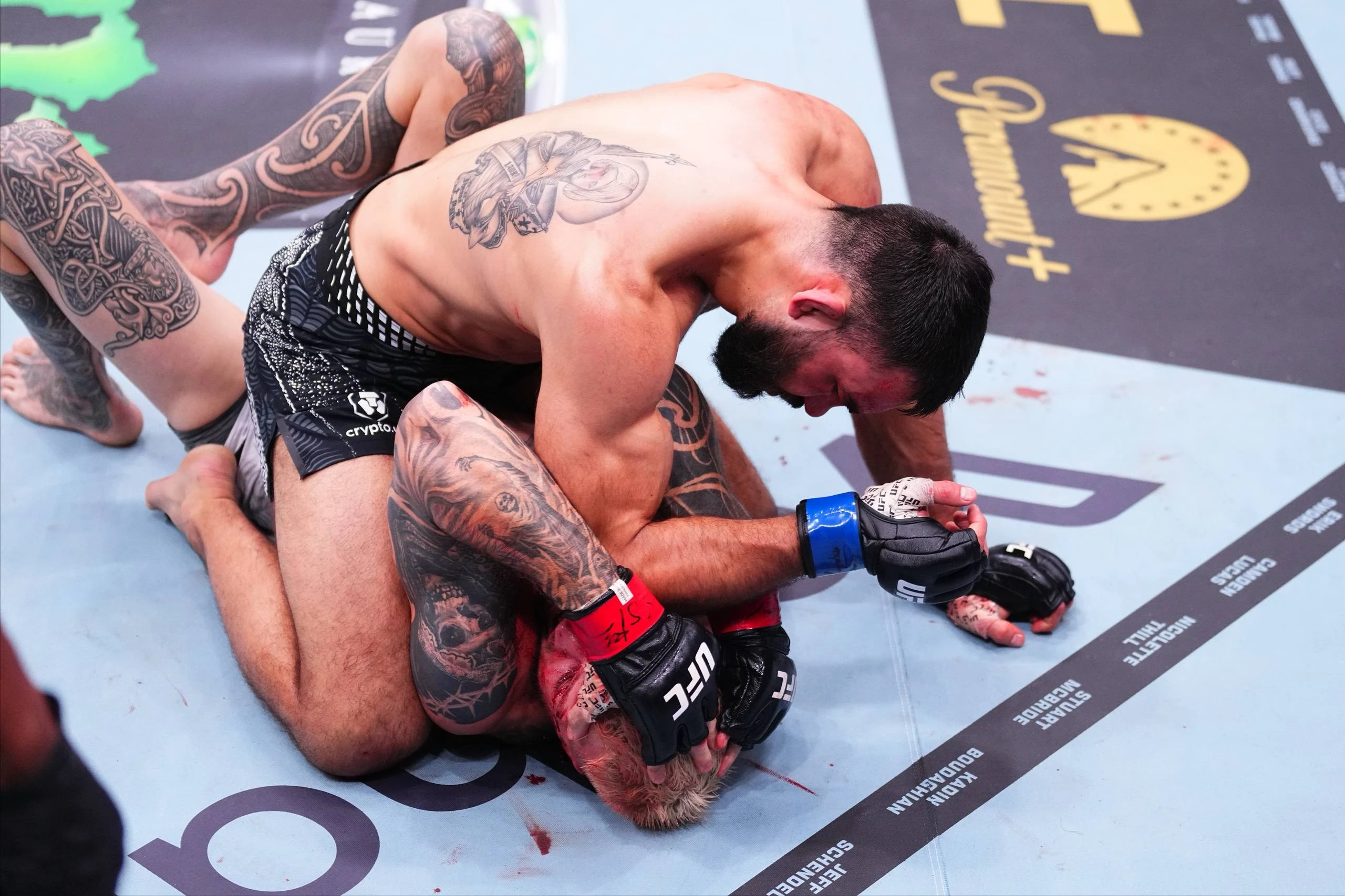 Поединок был остановлен во втором раунде после того, как французский боец перевёл соперника в партер, предпринял несколько попыток провести удушающий прием «ручной треугольник», а затем занял доминирующую позицию и обрушил на новозеланца серию ударов.