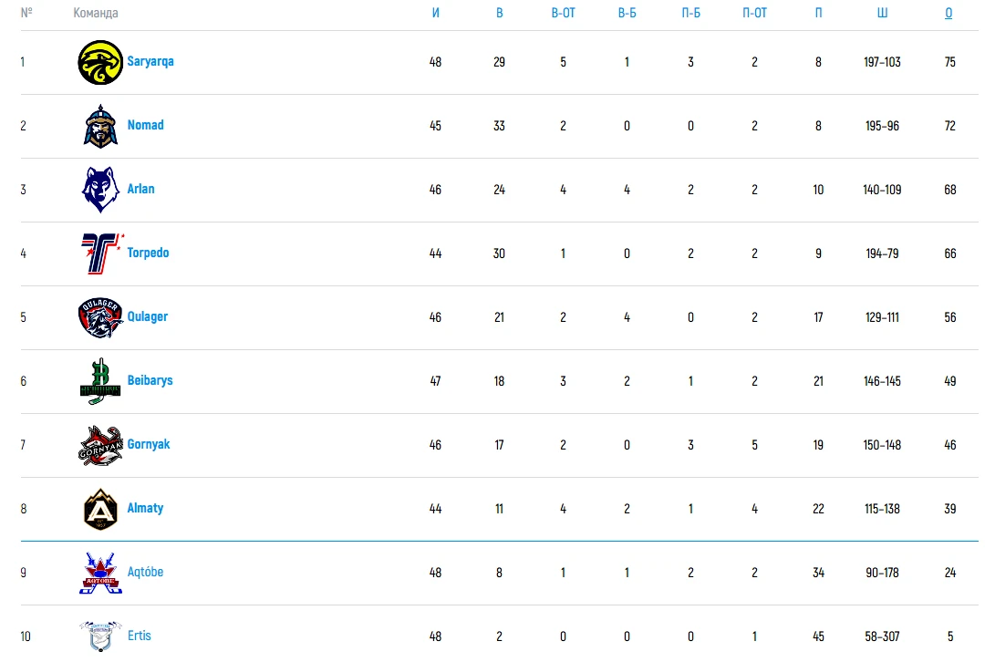 Pro Hokei Ligasy. Положение команд на 2 февраля