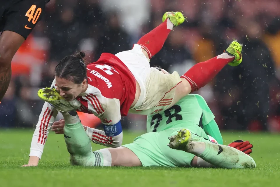25-летняя футболистка столкнулась со своей одноклубницей Лотте Вуббен-Мой в дополнительное время матча против «Коринтианса».