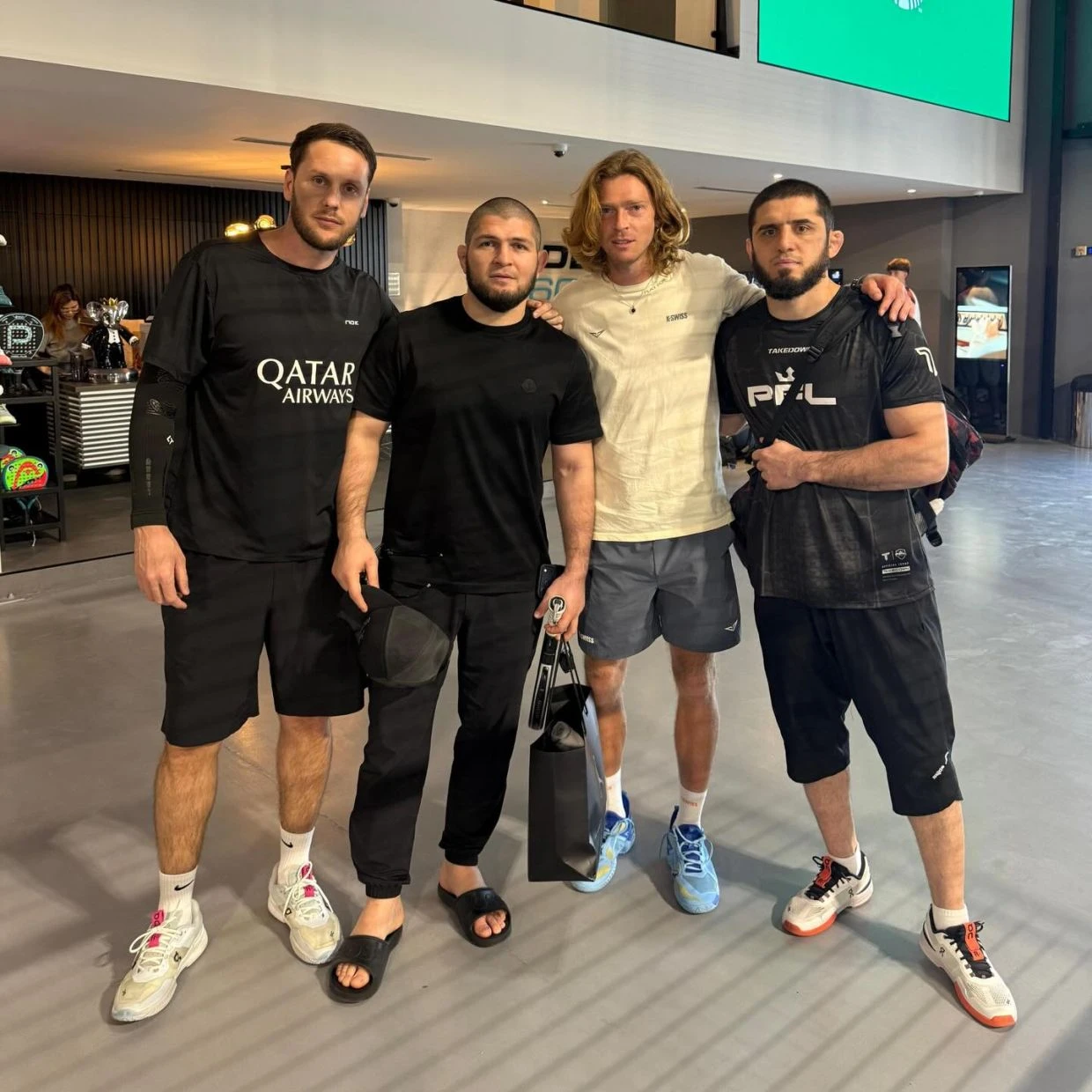 Судя по фото, Рублёв и Хабиб вместе сыграли в падел-теннис, которым боец и его команда активно занимаются в свободное время.