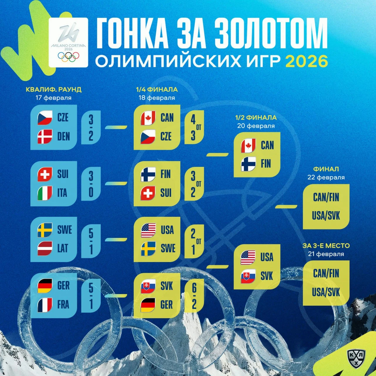 Стали известны полуфинальные пары мужского хоккейного турнира на Олимпиаде-2026