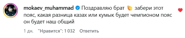Остается добавить, что известный боец ММА Мухаммад Мокаев призвал в соцсетях Алиби завоевать теперь пояс UFC.
