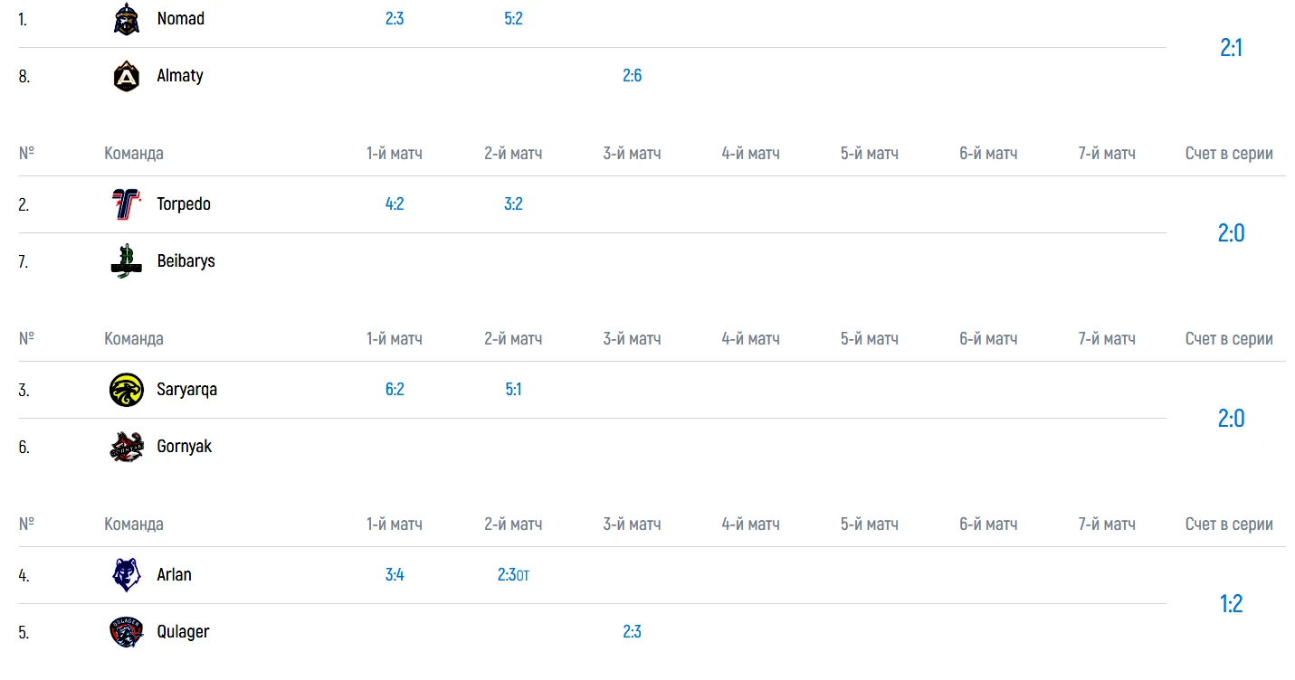 Два первых матча серии плей-офф выиграли карагандинцы (6:2 и 5:1). Счет в противостоянии 2-0 в их пользу.