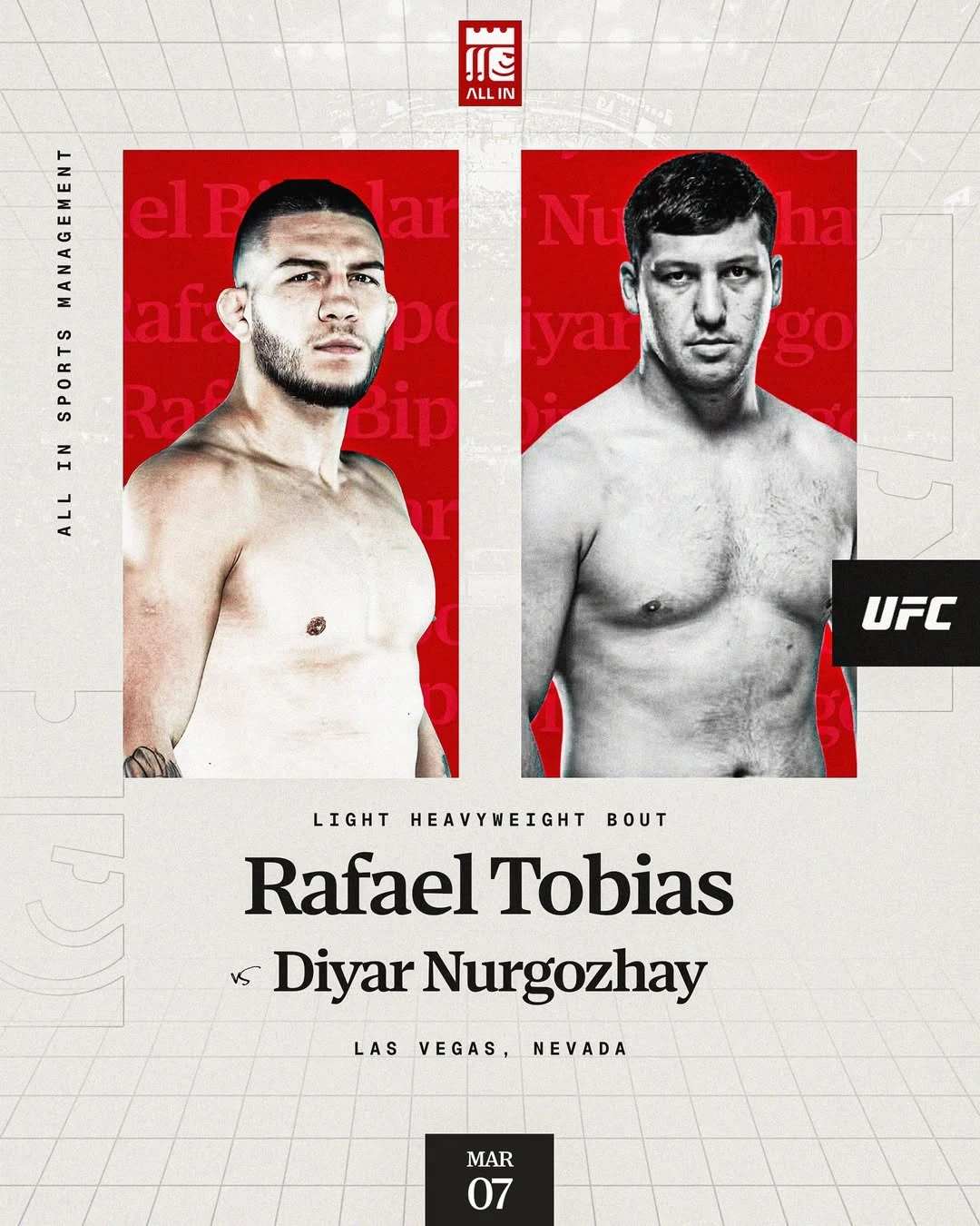 8 марта в Лас-Вегасе (США) казахстанский файтер Дияр Нургожай (10-2) выйдет в октагон в рамках турнира UFC 326. Его соперником станет бразильский дебютант лиги Рафаэль Тобиас (14-1).