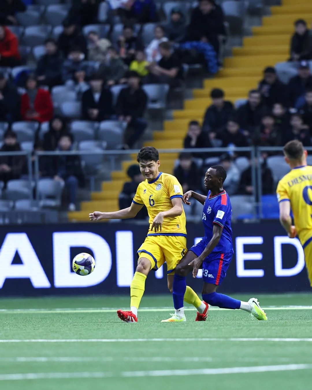 — Мы примерно предполагали силу намибийцев. Вначале они были очень организованными и играли в такую же схему — 1-4-3-3, но со своими нюансами: крайние нападающие защищали фланги, и схема при игре в обороне трансформировалась в 1-4-5-1. Полузащитники хорошо перекрывали ширину поля, и было трудно доставлять мяч до Чеснокова и Кенжебека. В начале Кенжебек не мог найти пространство для своего фирменного дриблинга, обострения и захода в середину.
