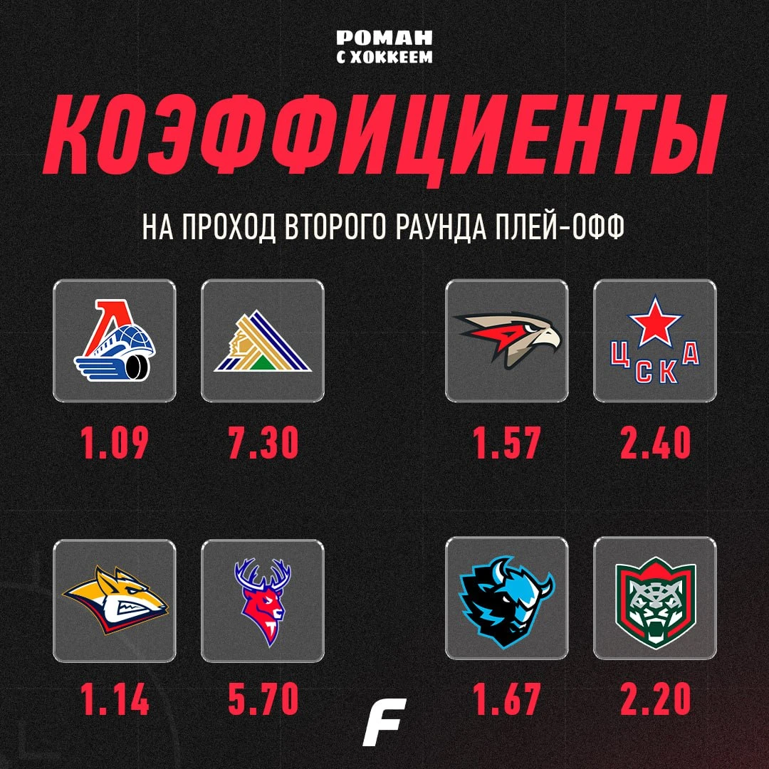 Кто является фаворитом четвертьфиналов? Телеграм-канал Роман с хоккеем опубликовал коэффициенты на проход в полуфиналы.